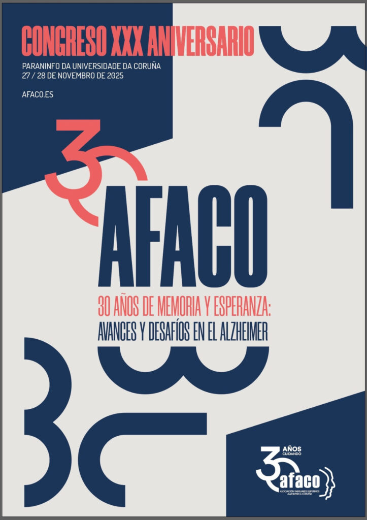 A Asociación de Familiares de enfermos de Alzheimer da Coruña (AFACO), conmemora o seu 30 Aniversario co congreso “30 anos de memoria e esperanza: avances e desafíos no Alzheimer”.