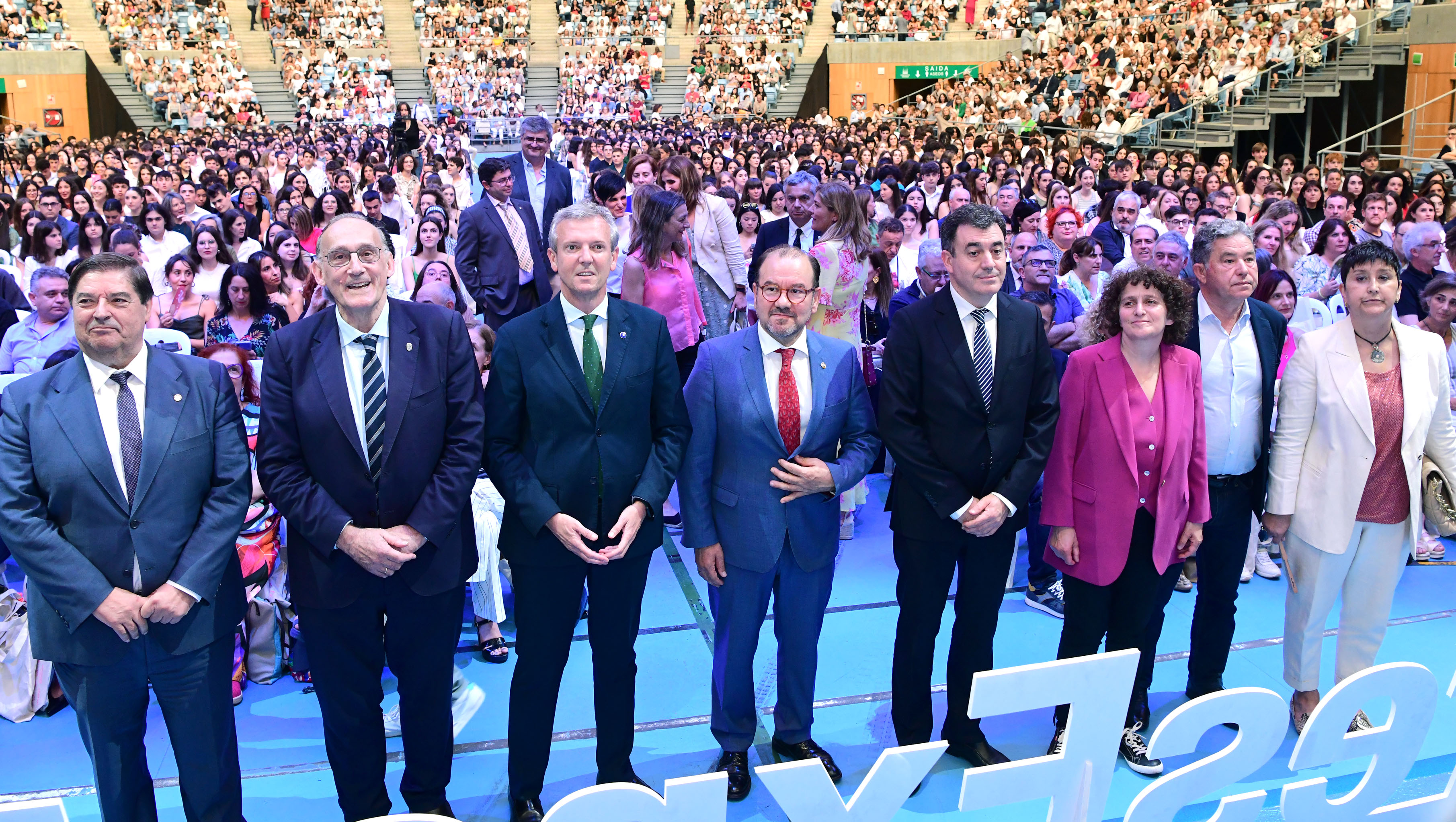 O acto de entrega contou tamén coa participación de Dulce Mª García Mella, secretaria xeral da USC; Pilar Murias Fernández, vicerreitora de Estudantes e Cultura da USC; Francisco J. Fraga López, vicerreitor de Organización Académica e do Campus de Lugo da USC; Natalia Caparrini Marín, vicerreitora de Estudantado e Empregabilidade da UVigo; María Jesús Movilla Fernández, vicerreitora do Campus de Ferrol e Responsabilidade Social da UDC; Olga López Rocamonde, concelleira de Benestar Social, Inclusión e Persoas Maiores do Concello de Lugo; Román Rodríguez González, conselleiro de Cultura, Educación, Formación Profesional e Universidade; Miguel Anxo Fernández Lores, alcalde do Concello de Pontevedra; Mª del Carmen Pieltain Fernández, concelleira delegada de Mobilidade e Seguridade do Concello de Ferrol; María José Lombardía Cortiña, vicerreitora de Estudantes, Participación e Empregabilidade da UDC; Alfonso Lago Ferreiro, vicerreitor de Titulacións e Innovación Docente da UVigo; e Susana Reboreda Morill, vicerreitora de Extensión Universitaria da UVigo. Entre alumnado, profesorado e familiares, o acto congregou a arredor de 4.000 persoas.