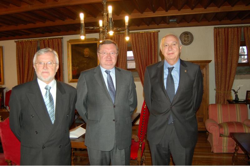 Coincidindo coa celebración do contreso internacional ‘Espazos interculturais: a historia da familia é a historia do pobo’, no que participan docentes e investigadores rusos, o reitor Juan Casares recibiu este mércores ao embaixador da Federación da Federación Rusa en España, Alexander Kuznetsov, quen ademais asinou no libro de Honra da USC. Na xuntanza, á que tamén asistiu o profesor Agustín Dosil, organizador do congreso, referíronse aos actuais vínculos entre Rusia e a institución compostelá a través de múltiples convenios de intercambio e a presenza de estudantes e investigadores rusos nas aulas da universidade de Santiago. O embaixador Kuznetsov, como tamén puxo de manifesto na súa intervención no congreso, defendeu que as relacións da Universidade Estatal de Humanidades de Rusia coa USC permiten un "achegamento" de Galicia a Rusia "de maneira estable e a longo prazo". Congreso Internacional O Congreso, inaugurado esta mañá polo reitor compostelán no Hostal dos Reis Católicos, estivo dedicado nesta primeira xornada á proxección e papel da universidade europea no presente século. Nas sesións deste xoves 24 e o venres 25, o encontro centrará a súa atención sobre as migracións como fenómenos de índole cultural, os retos da sociedade civil na actualidade e sobre as relacións comerciais e económicas entre Rusia e España. En conxunto, a xuntanza permitirá como a evolución da ambas sociedade ao longo da historia está conformada pola suma colectiva da institución familiar como eixo da construcción social. Esta é unha acción incluída nos eventos do Ano Dual España-Rusia, promovida polos gobernos de ambos países e organizada por Familias Mundi.