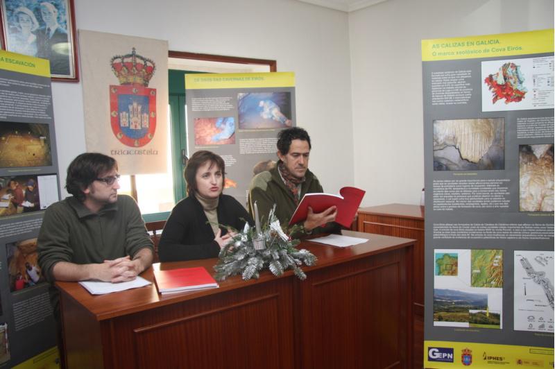 Os datos relacionados coa xeoloxía e a evolución do poboamento paleolítico da Depresión de Monforte de Lemos, así como os importantes achados do Grupo de Estudos para a Prehistoria do Noroeste da USC (GEPN) nas cavidades de Cova Eirós (Triacastela) e Valdavara (Becerreá) son o punto de partida para analizar a vida na montaña luguesa na Idade do Xeo, tema do libro To the West of the Spanish Cantabria. The Palaeolithic settlement of Galicia. O volume presentouse este xoves 29 no Concello de Triascastela coa presenza dos seus coordinadores, o catedrático Ramón Fábregas e o investigador Arturo de Lombera, e da alcaldesa de Triacastela Olga Iglesias. A obra recolle as contribucións realizadas polos investigadores que participaron no curso de verán ‘A vida na montaña luguesa na Idade do Xeo’, en total unha ducia de traballos de marcado carácter interdisciplinar que achega unha visión completa do Cuaternario. Publicado nunha destacada editorial inglesa especializada en publicacións internacionais de carácter arqueolóxico, o libro aspira a difundir a unha maior audiencia dentro da comunidade científica os achados realizados nas comarcas orientais de Galicia. Trátase dunha proposta editorial que cubre un importante baleiro na investigación galega xa que practicamente se carecía de obras de referencia sobre esta rexión, clave á hora de comprender a evolución paleoambiental do noroeste peninsular e sobre todo da súa relación co poboamento paleolítico da Cornixa Cantábrica. Partindo dos achados rexistrados nos xacementos das serras Orientais e Depresións terciarias do interior lucense de cara ao estudo da etapa cuaternaria desta rexión, o libro articúlase en dous grandes bloques: o primeiro é unha recompilación dos traballos realizados na zona dende un punto de vista historiográfico, zooarqueolóxico, paleontolóxico, paleoambiental e xeolóxico, compoñendo un marco de referencia sobre os coñecementos acadados durante as últimas dúas décadas. Unha vez presentada a evolución paleoambiental da rexión, o segundo bloque está centrado na contribución dos descubrimentos realizados no marco do proxecto de investigación dirixido dende o GEPN e o IPHES da Universitat Rovira i Virgili.