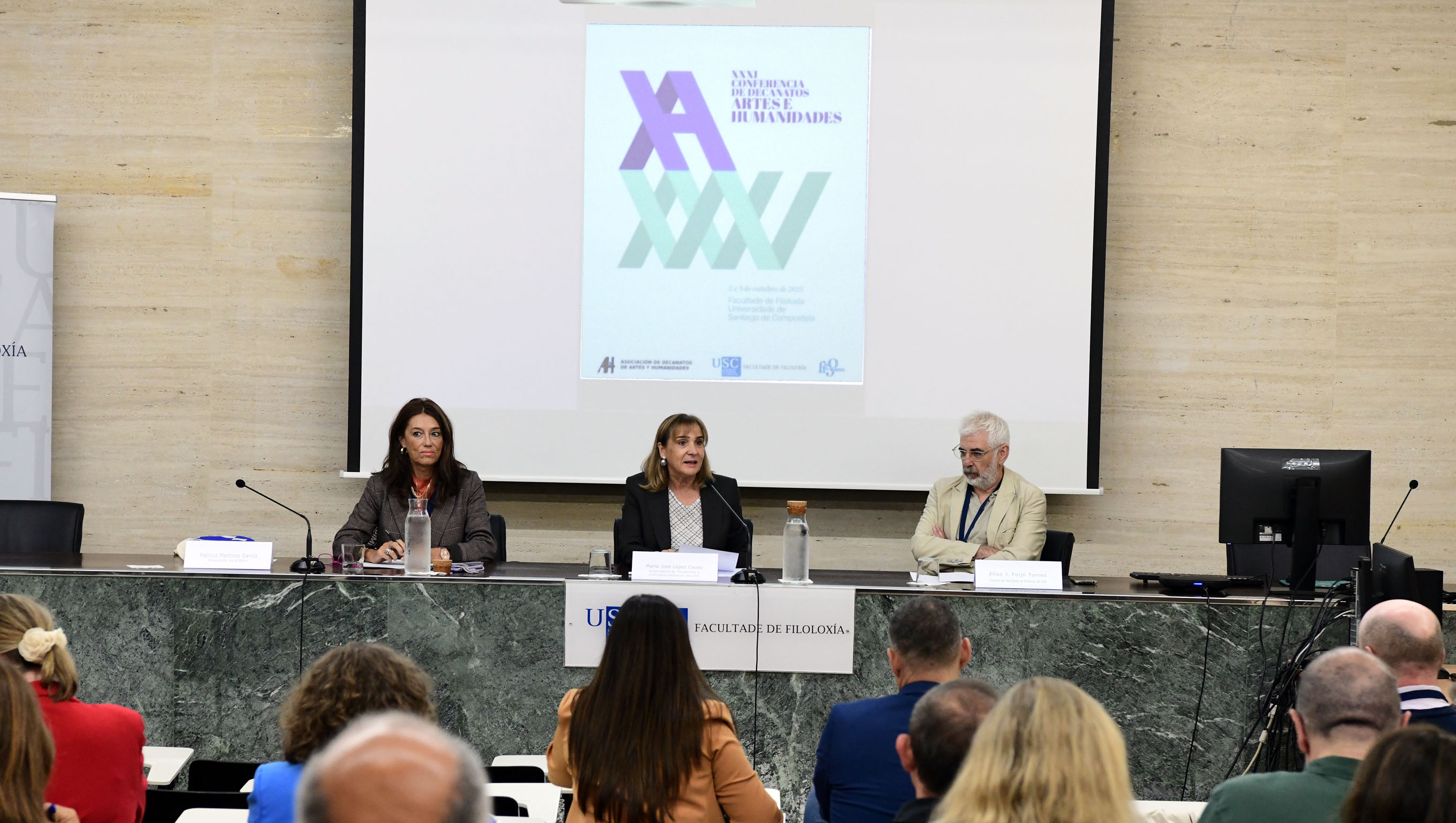 A Facultade de Filoloxía da USC acolle dende este xoves 2 a trixésimo primeira edición da Conferencia de Decanatos de Centros Universitarios con titulacións en Artes e Humanidades (ADEAH). Esta asociación ten como fins propios o fomento, a mellora e a coordinación dos estudos neste eido, mediante a creación de foros de debate e intercambio abertos a toda a cidadanía española sobre temas de interese para estas titulacións universitarias.