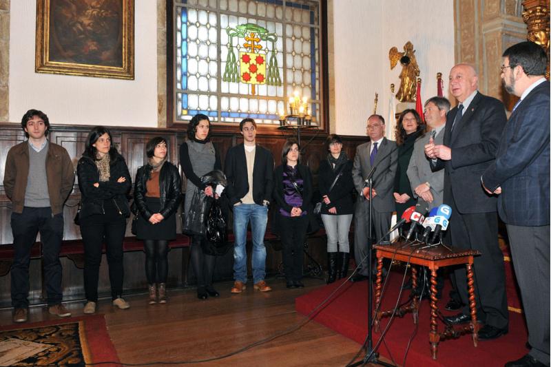 O Colexio de San Xerome abriu este martes as súas portas aos licenciados/as en Medicina da USC clasificados entre os 100 mellores expedientes na convocatoria do exame MIR deste ano. O reitor Juan Casares recibiunos nun acto no Salón de Graos da Reitoría acompañado polo equipo decanal da Facultade de Medicina, co profesor Juan Gestal ao fronte. Este ano foron 218 os estudantes da USC que se presentaron á proba. Deles, a alumna Alba González Rodríguez rematou no posto número 13, o que lle facilitará en gran medida o acceso á formación de especialista que desexe en España. A ela, da USC séguenlle Sheila Torrado González no número 34, Elisa Pose Méndez no 40, Adrián Pablo Amado Gutiérrez (44), Sara Tato Varela (54), Uxía Blanco Sampedro (61), Guillermo Ventosa Fernández (64), Emilio Francisco Rodríguez Castro (71), Iria Alejandra López Dequidt (91) e Noelia Curros Mata (92). Os resultados colectados sitúan ao centro compostelán á par das universidades de Valencia e a Central de Barcelona, con outros tantos alumnos neste ranking de honra, ao tempo que supera o rexistro do pasado ano cando seis dos seus estudantes xa figuraron entre os cen primeiros, situando á USC como a terceira universidade de España con mellores resultados . O reitor cualificou a xornada como “un día grande” no que se pon de manifesto que “cumprimos de xeito eficiente os cometidos que a sociedade nos impón”. Casares destacou a magnitude das probas MIR, ás que nesta edición concorreron máis de 13.000 licenciados/as en Medicina de toda España para preto de 7.000 prazas. Entre os novos médicos internos residentes atópanse ademais dous premios extraordinarios do centro, mostra de que “estamos a facer as cousas como hai que facelas” sinalou o decano Juan Gestal, representando “un estímulo para seguir traballando nesta liña”. Como mostra do valor engadido dos resultados acadados, o decano lembrou que no MIR os coñecementos representan unha porcentaxe moi superior á do expediente académico ao longo da etapa universitaria o que evidencia na súa opinión que os licenciados compostelán “están ben formados”.