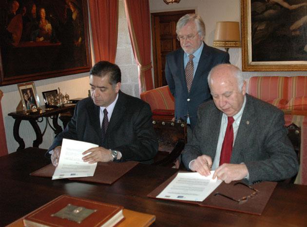 O reitor Juan Casares asinou este xoves 23 co secretario xeral da Confederación Interamericana de Educación Católica (CIEC), José Leonardo Rincón Contreras, un convenio de colaboración para a realización dun programa de formación de formadores. Os destinatarios do programa programa serán os integrantes da CIEC e das organizacións nacionais de pais de familia e de alumnos dos países nos que está presente esta organización. No encontro celebrado na Reitoría compostelá tamén estivo presente o profesor Agustín Dosil. O programa de formación a desenvolver contempla a realización do máster en Ciencias da Familia (edición internacional) e cursos de especialista en ‘ Ciencias da Familia’, ‘Orientación e Mediación Familiar’, ‘Terapia Familiar’ e experto en Ciencias da Familia. Todos eles desenvolveranse en Santiago e nos países de procedencia do alumnado.