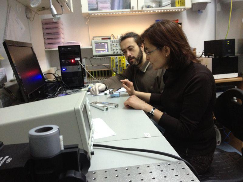 Dolores Cortina e Héctor Álvarez, do equipo que dende a USC coordinou o deseño de Califa, no laboratorio de cristais Apariencia do calorimetro CALIFA a escala